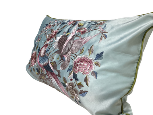 Silk Bluebird Embroidery Bed Pillow -open box-