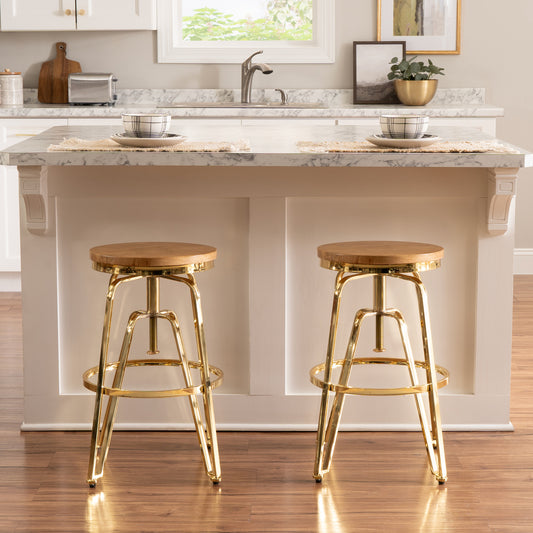 Wood/Gold Metal Bar Stool - Local Pick Up Only