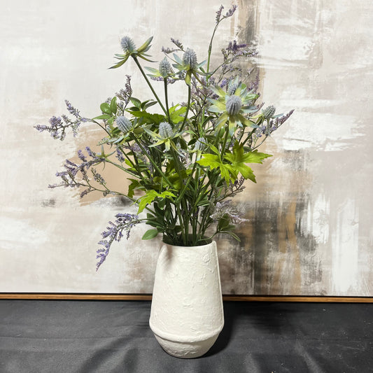 Textured White Vase with Mixed Faux Floral Arrangement-OPEN BOX