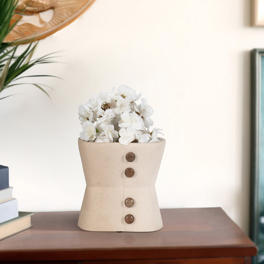 12" Tutwell Small Vase With Wood Beads, Brwn