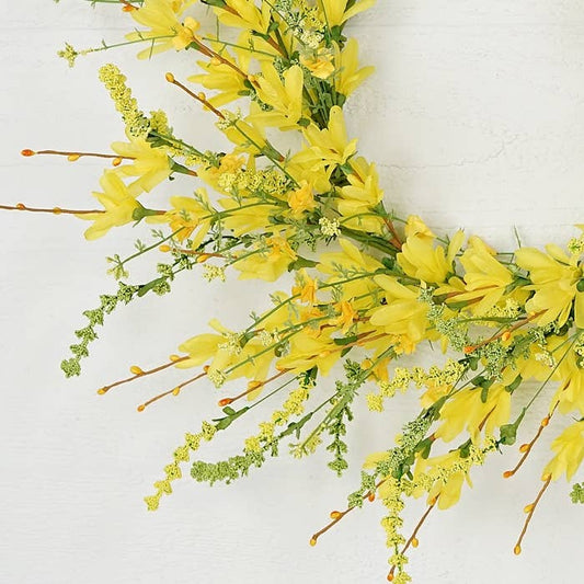 Yellow Forsythia & Heather Wreath- 22"