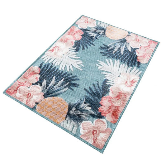 Blue Outdoor Botanical Rectangle Rug