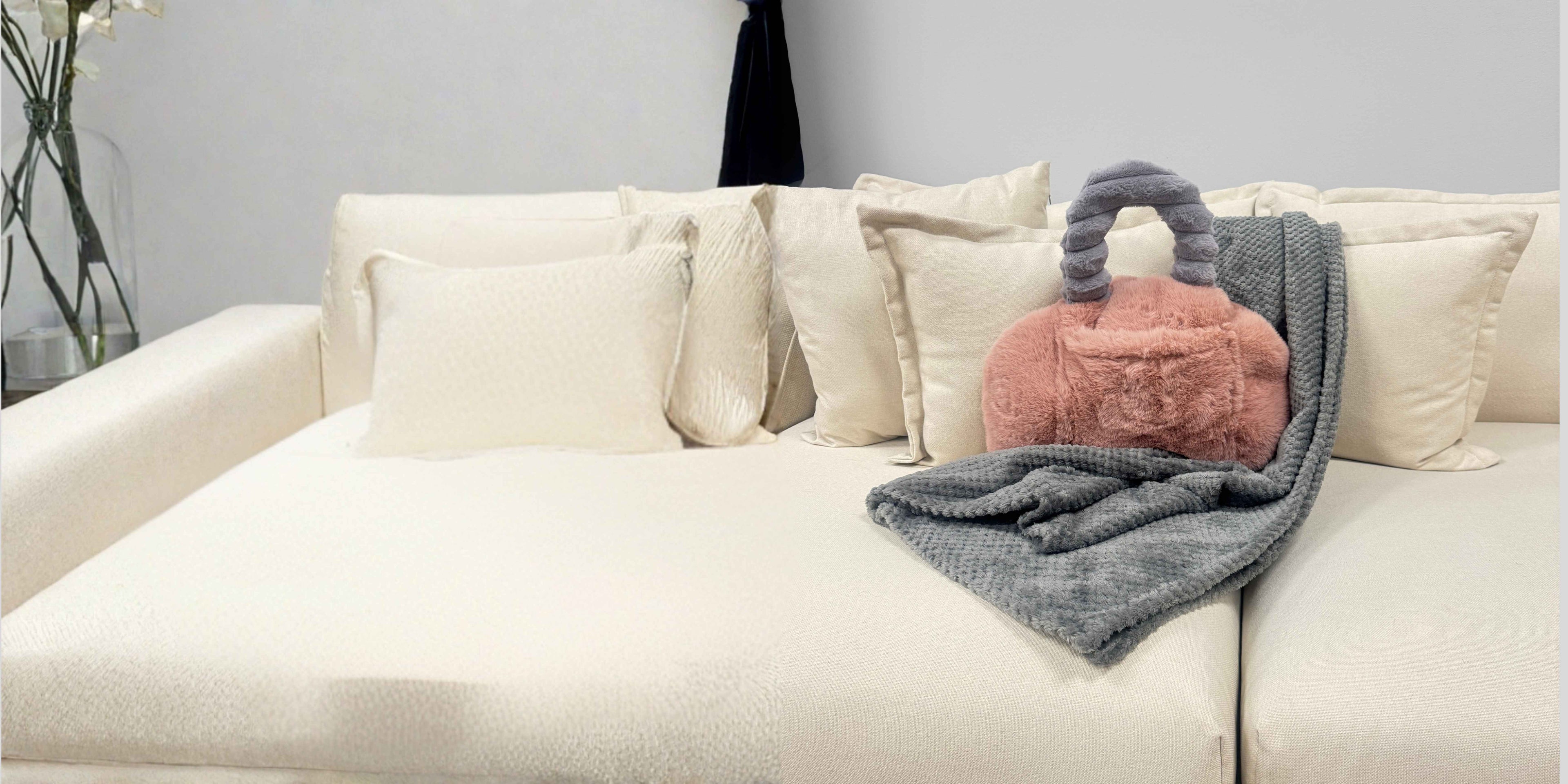 Exclusively at House of Sleek - meet the Pur-Low! A 3-in-1 essential that transforms from a furry carryall into a plush pillow or cozy throw. Designed for the woman who loves effortless style and expects her comfort to go anywhere she does.
