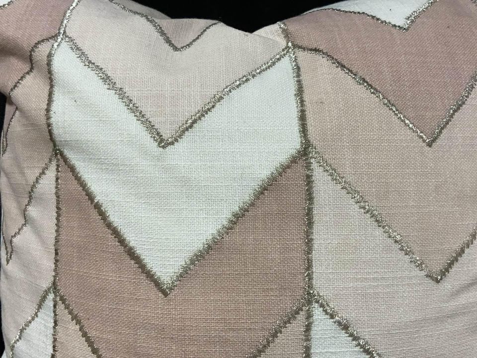 Description: Get ready to add a splash of pink to your bed with these 2 down pillows! Featuring 3 shades of pink, plus white and silvery gold stitching, they're sure to brighten up your space. Measuring 21X21, this SET OF 2 pillows will give your sleeping quarters a cozy and playful touch.