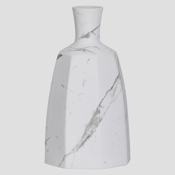 Aris Marble Ceramic 14.5" Faceted Round Bottle Vase *OPEN BOX