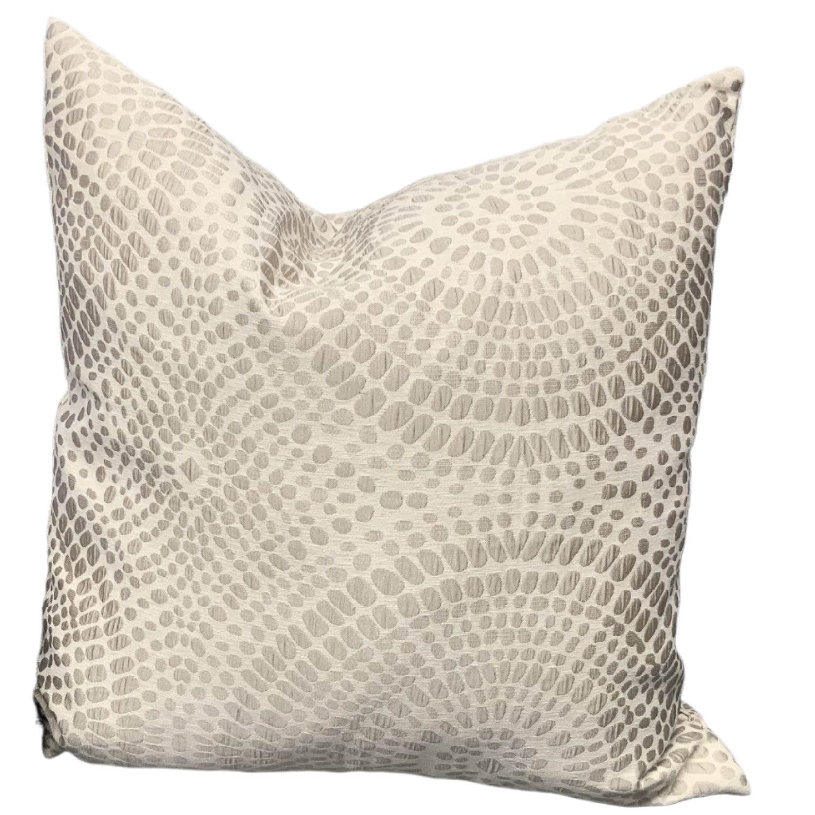 Description: This 19"x19" accent pillow, featuring a luxurious down insert, effortlessly combines classic elegance with modern flair, making it a perfect addition to your living room. Its versatile design enhances a variety of decor styles, adding both comfort and sophistication to your space. *Slightly used for staging, it remains in excellent condition.