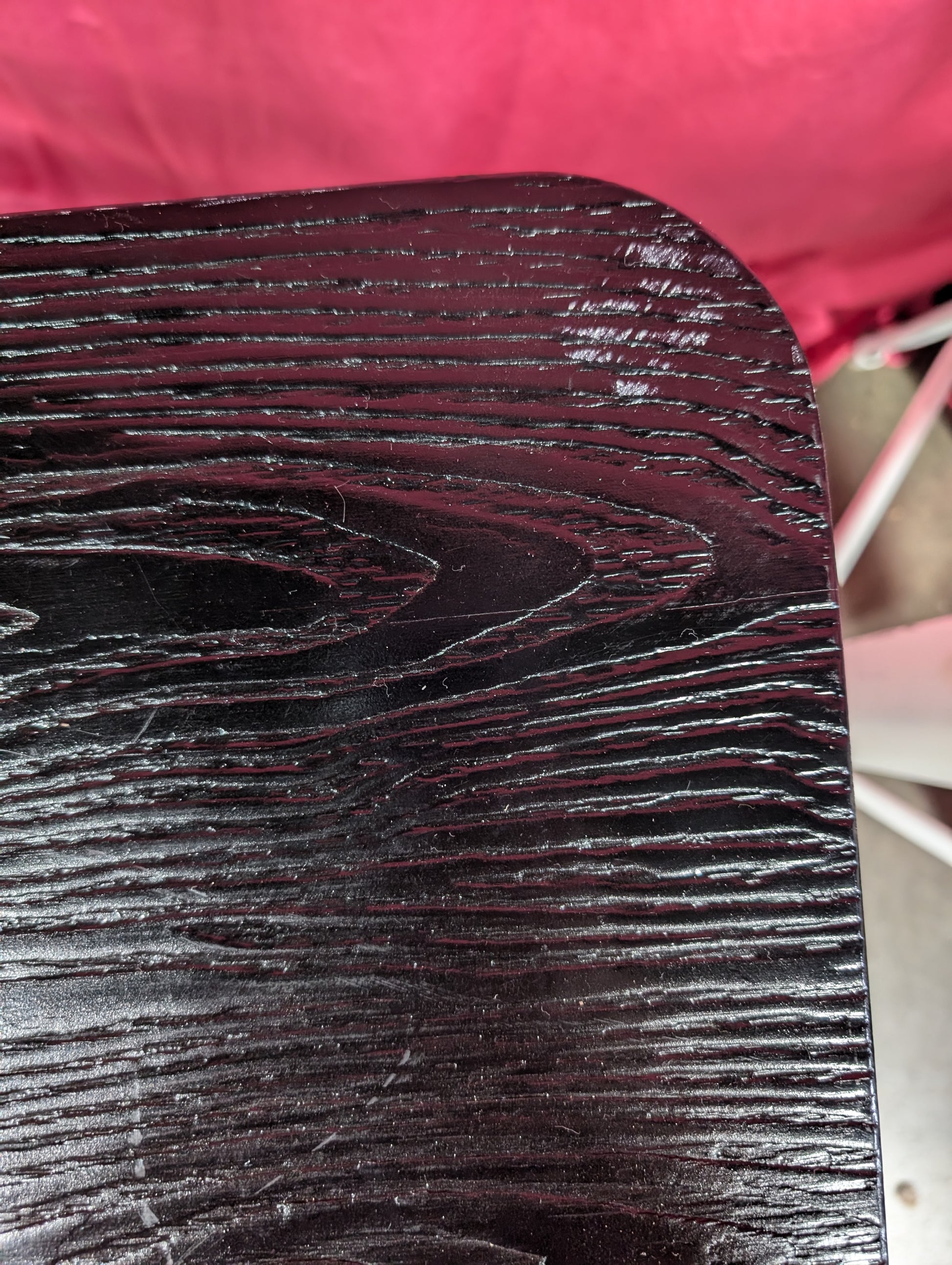Description: White metal base with black wood top. Comes as a set. Gently used for staging. Wear on top of seat---see pictures for reference. Local pick up only.