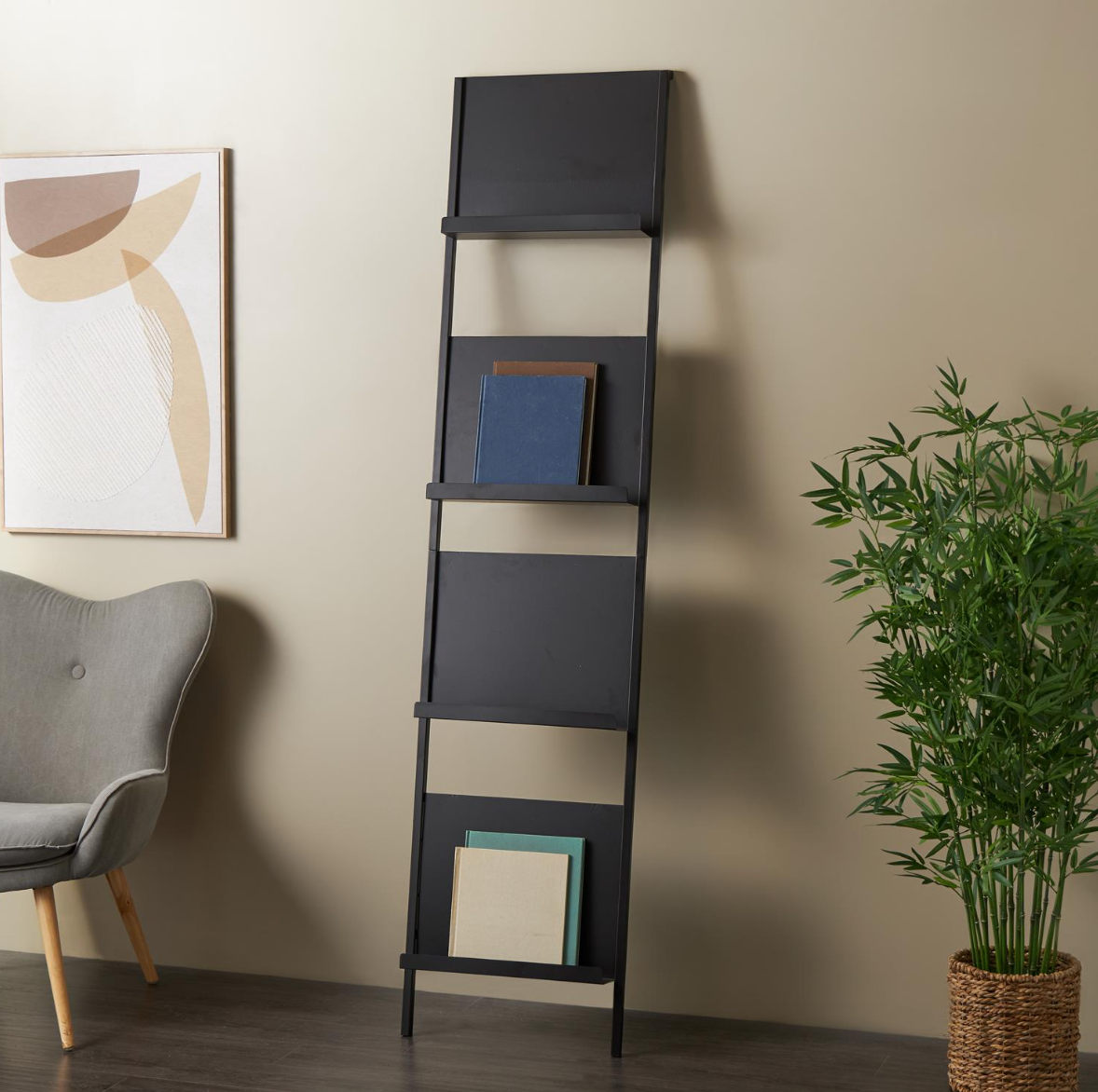 Black Metal Tall 4 Slot Magazine Rack Holder
