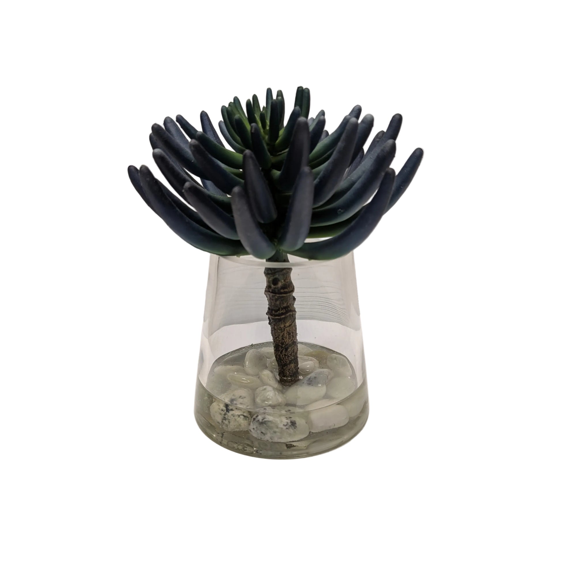 Description: Faux Blue/Green Succulent Water Garden. A thick coating of epicuticular wax, or farina, covers the leaves, giving them a chalky appearance. Gently Used for Staging.