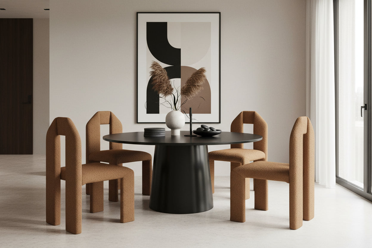Host confidently with this saddle boucle dining chair, designed to bring comfort and contemporary style to any dining space. Upholstered in rich saddle boucle fabric, the chair offers a soft, textured feel, while an iron metal inner frame provides strength and lasting support. Its clean lines and subtle geometric influence create a modern silhouette that pairs effortlessly with both formal dining rooms and casual breakfast areas. Thoughtfully designed for comfort and visual appeal, this chair makes every meal feel considered and inviting. SET OF 2
