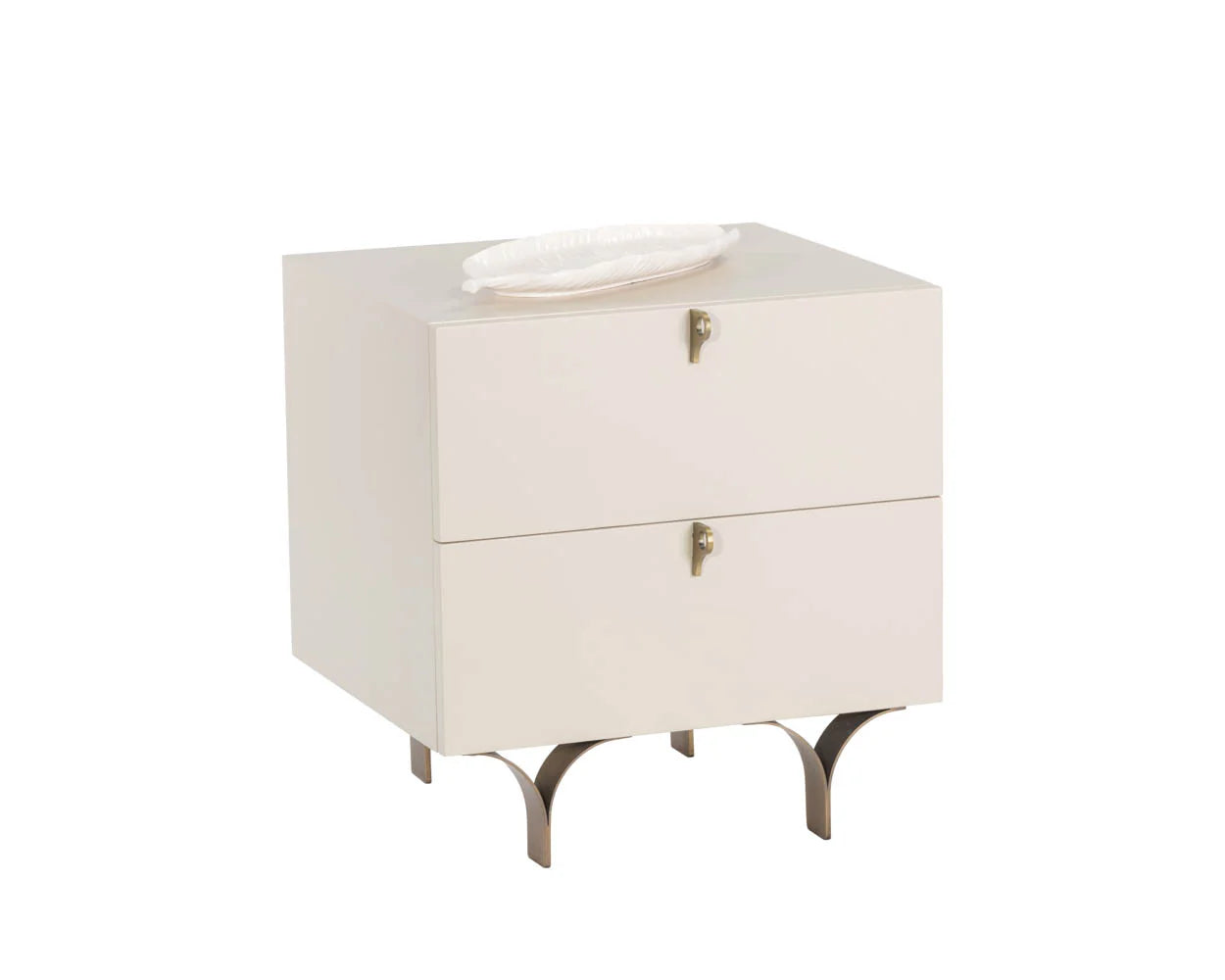 Description: Enhance the elegance of your bedroom sanctuary with this chic nightstand. It boasts two self-closing drawers made of rubberwood and acacia veneer, plus a lovely wood grain texture and a charming teal paint job. The antique brass feet and drawer handles add a unique touch. To complete the set, match it with the coordinating dresser. Use as a nightstand or a console table for added versatility.