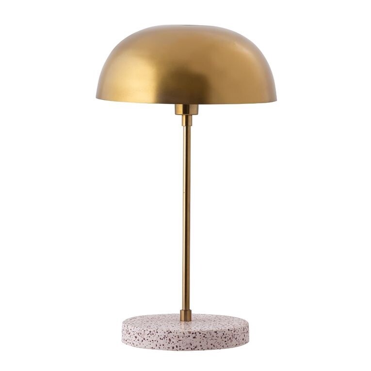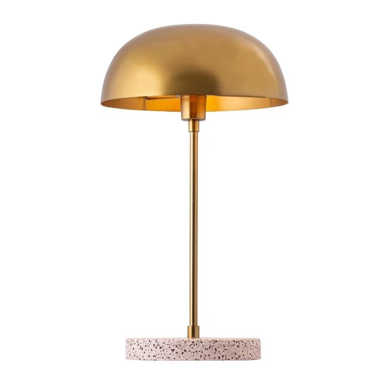 Description: Light up any room with the beautiful and refined Emory Lamp. This charming table lamp boasts a gleaming brass shade crafted from iron that's complemented by a terrazzo finished concrete base. Gently Used for Staging.
