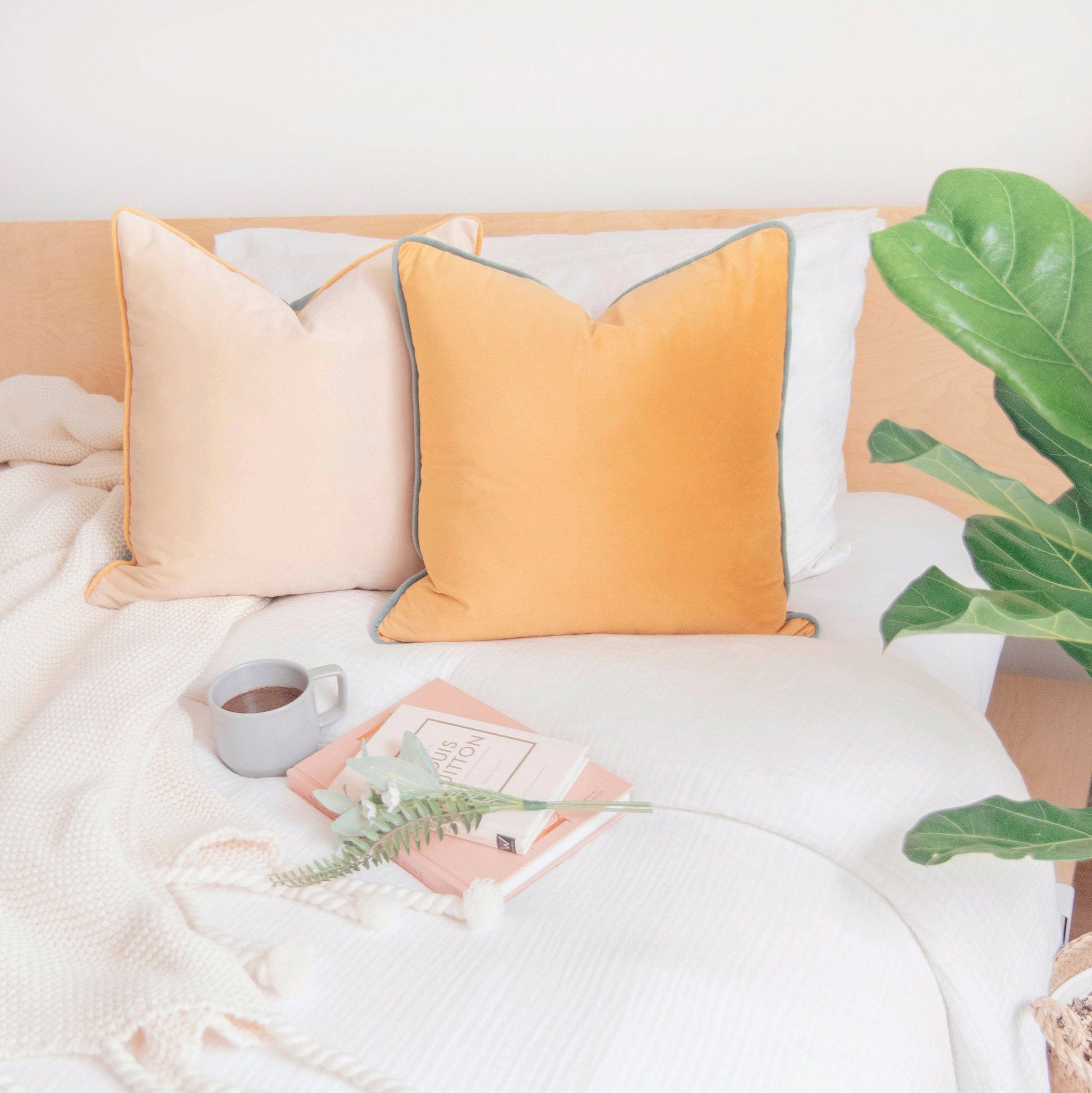 - Yellow/Orange Velvet Pillow 14"x14."