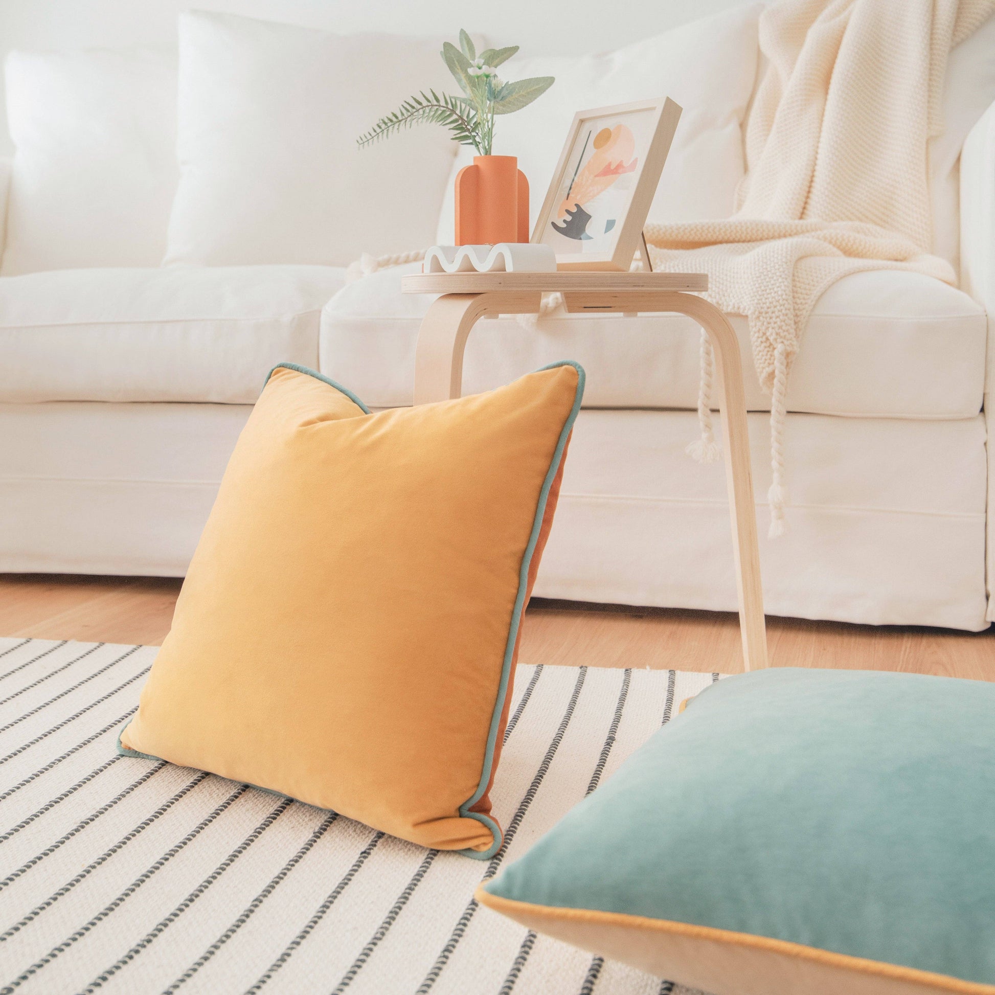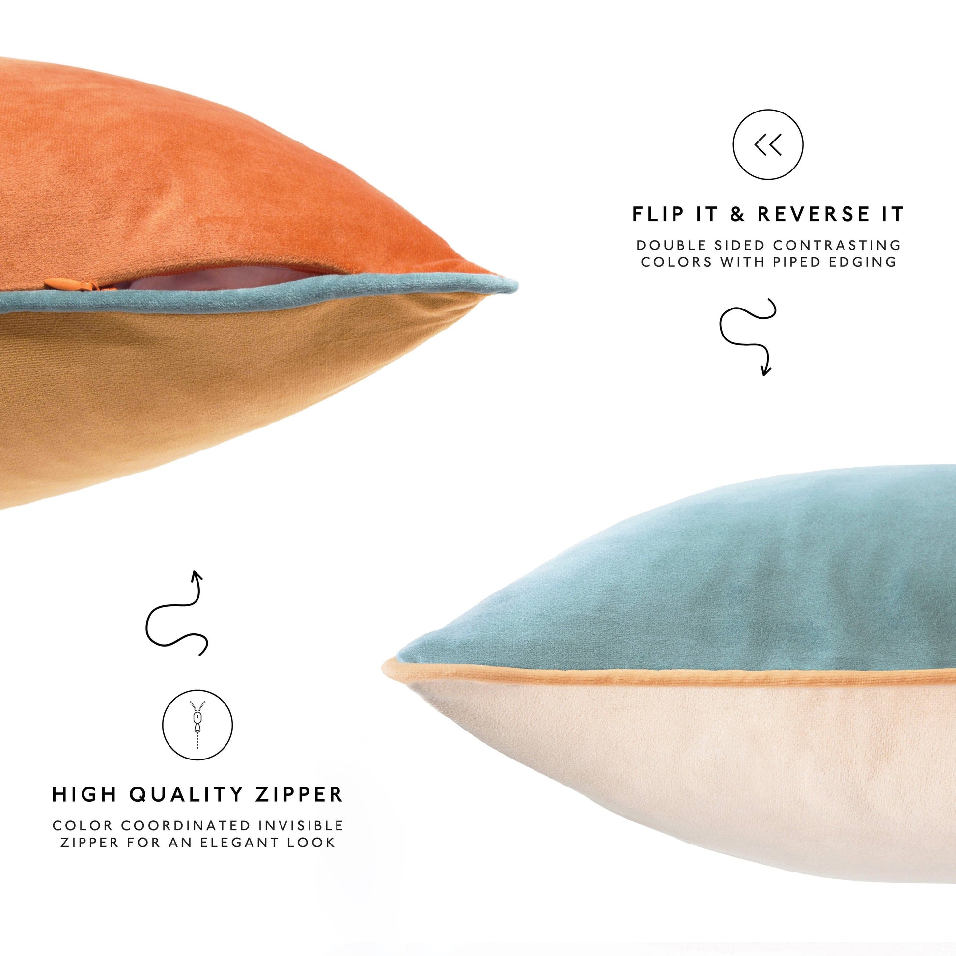 Bright, bold, and full of personality, this set of color-block velvet pillows adds an instant pop of color to any space. Crafted with soft, high-quality fabric, they offer both comfort and durability. The tailored piping helps the pillows maintain their shape, while the color-coordinated hidden zipper keeps the look clean and polished. Perfect for layering on a sofa, bed, or accent chair, these pillows bring vibrant style and everyday comfort to your home.