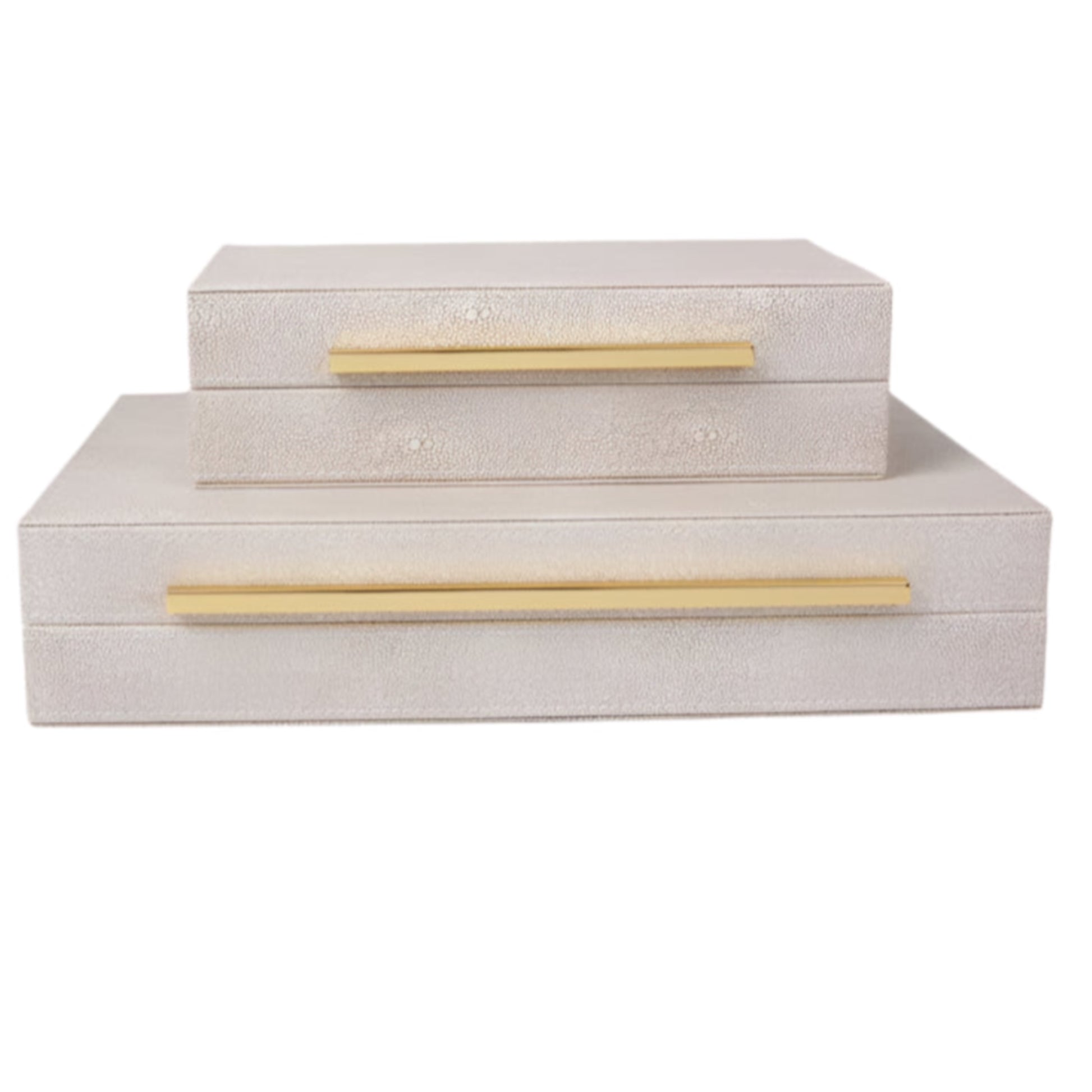 Faux Ivory Shagreen Leather Decorative Boxes-Set of 2