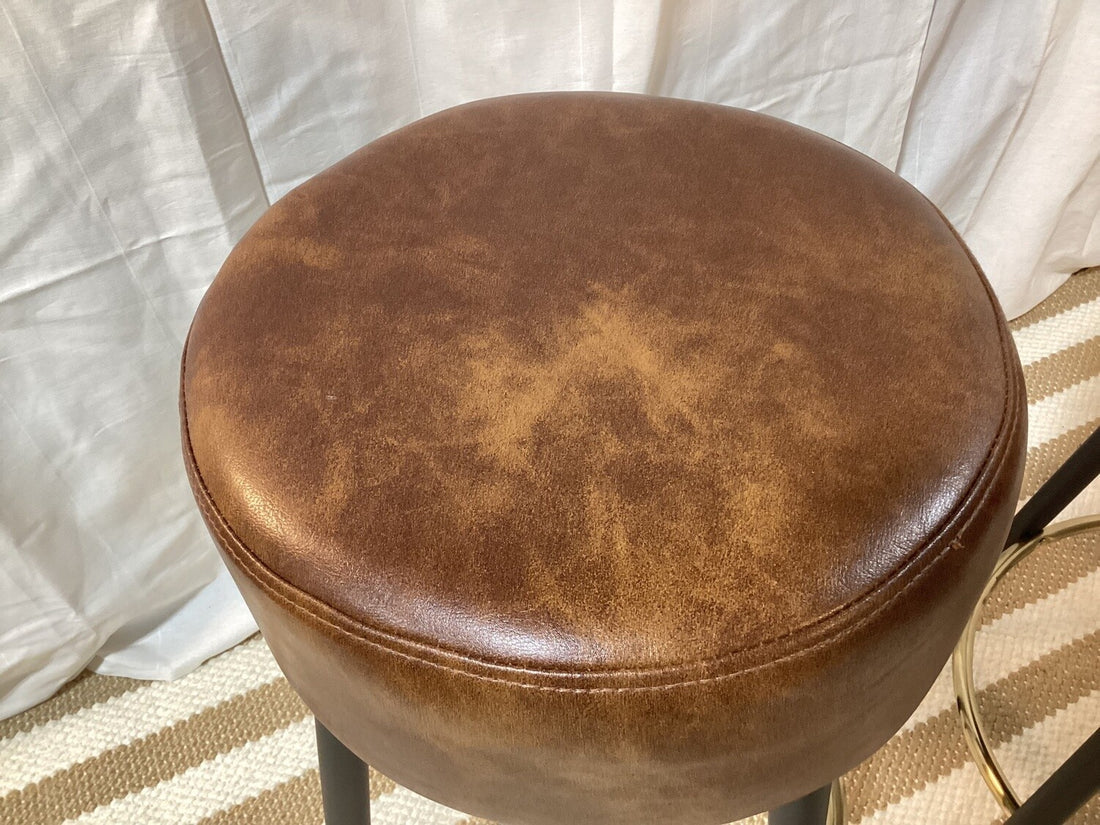 Description: 31"tall, 13" diameter. Faux leather bar stool with black metal legs. Gently used for staging (set of 2). Local Pick Up Only.
