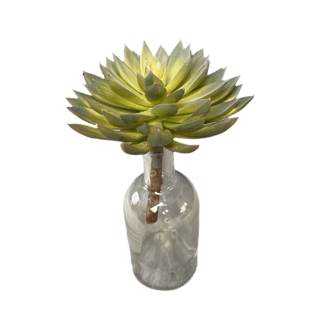Description: Faux succulent flower 6.5"h,5.5"w. Vase not included