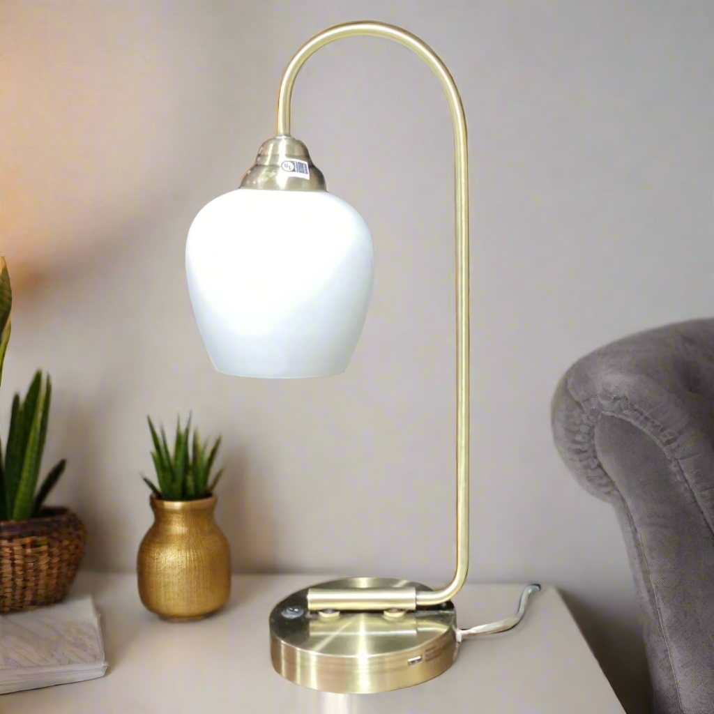 This set of two 20” gold table lamps adds a touch of elegance and warmth to any space. Each lamp features a sleek, gold-finished base and a coordinating shade that softens the light and enhances the overall design. Set of 2
