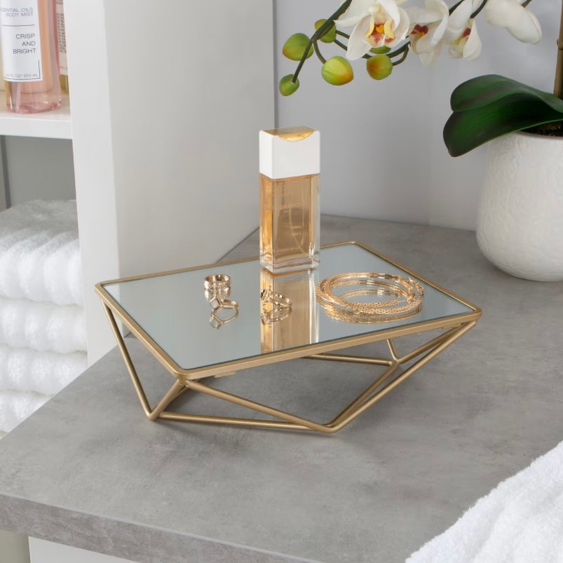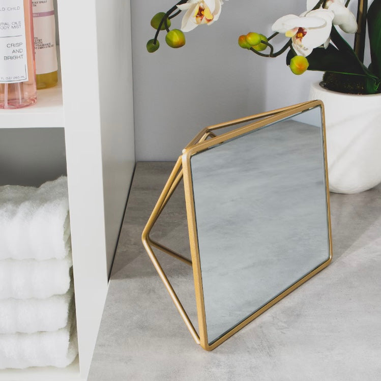 The geometric design allows the mirror to add a chic and modern decorative piece to any table or dresser.