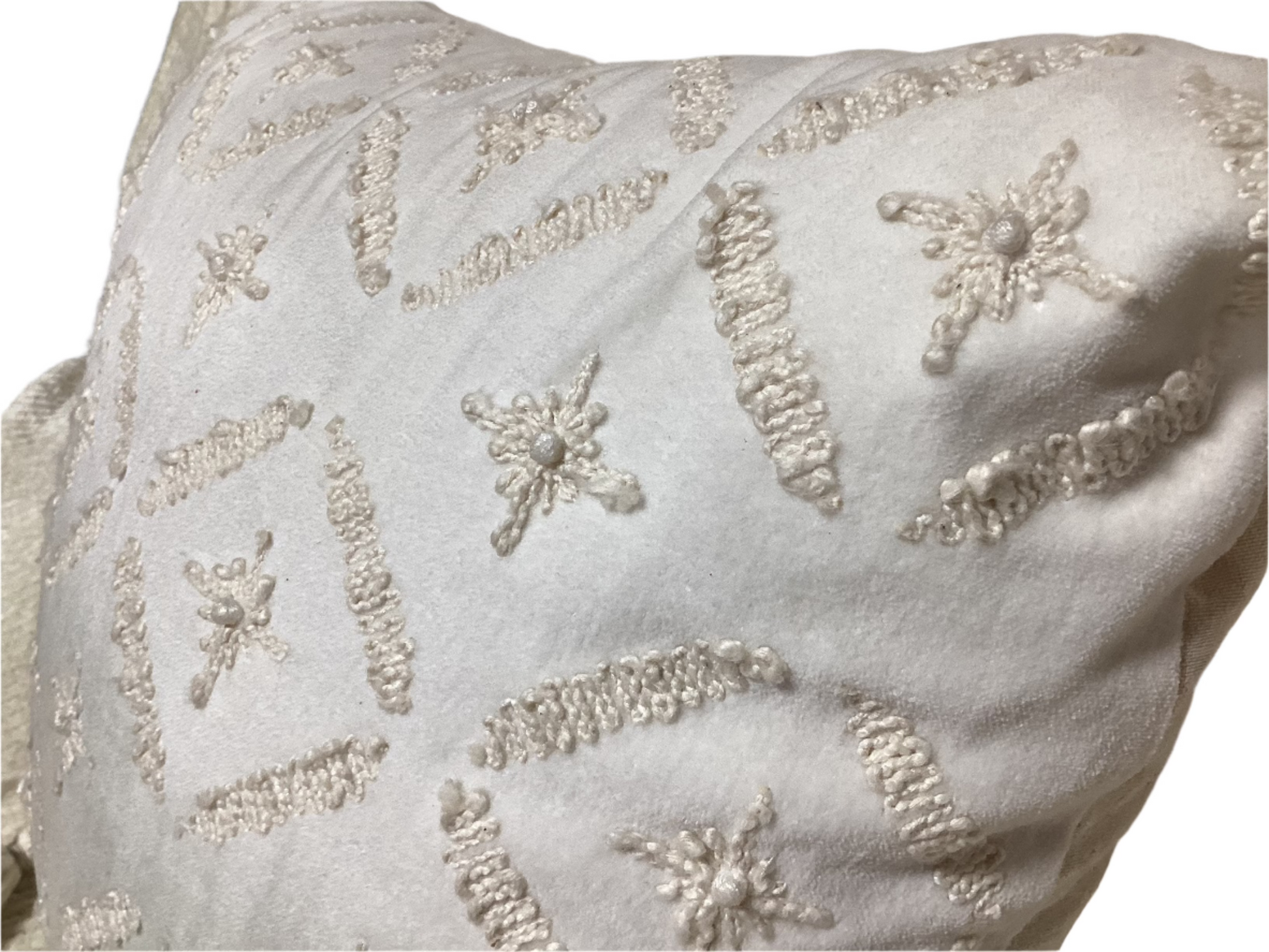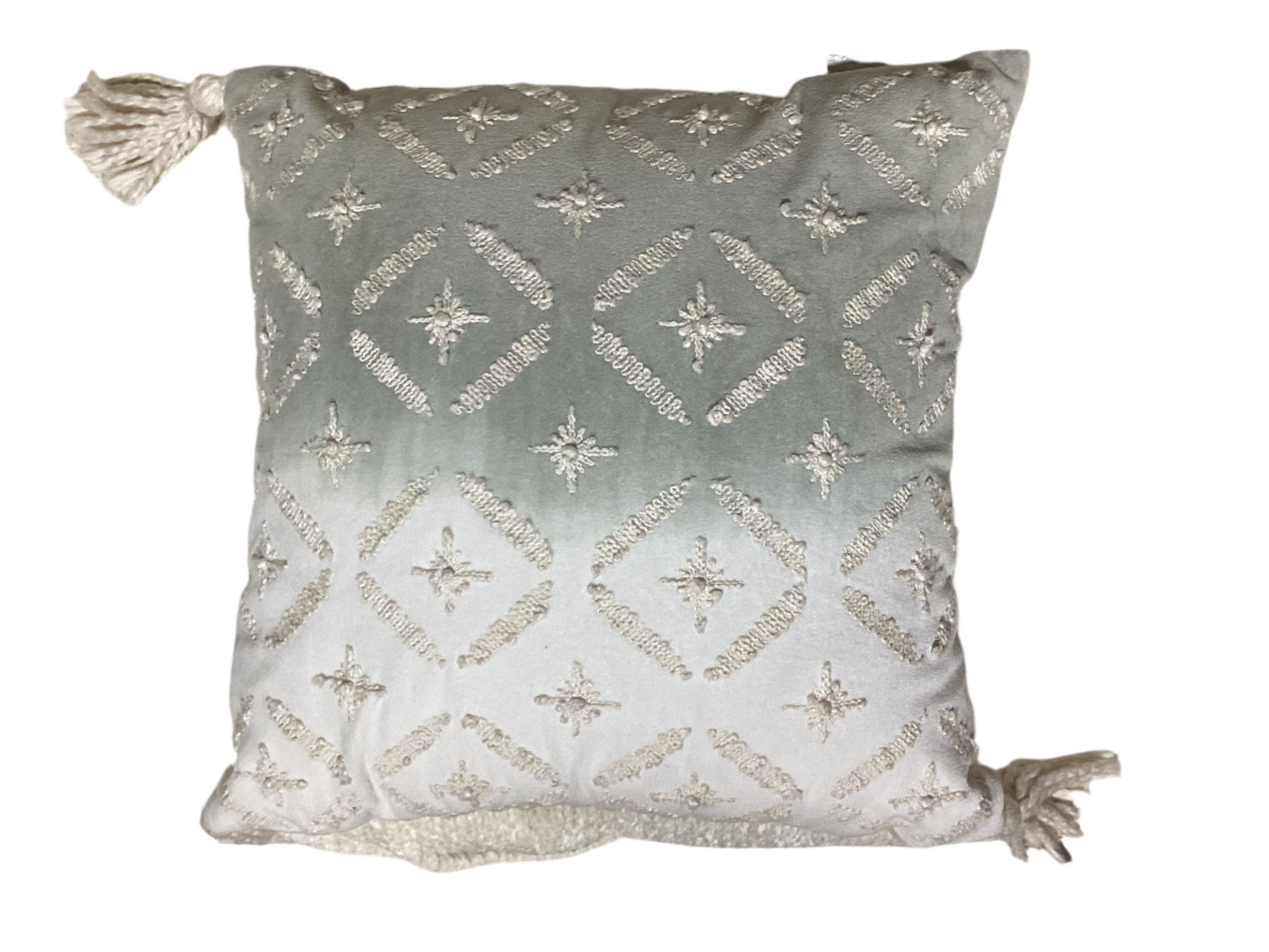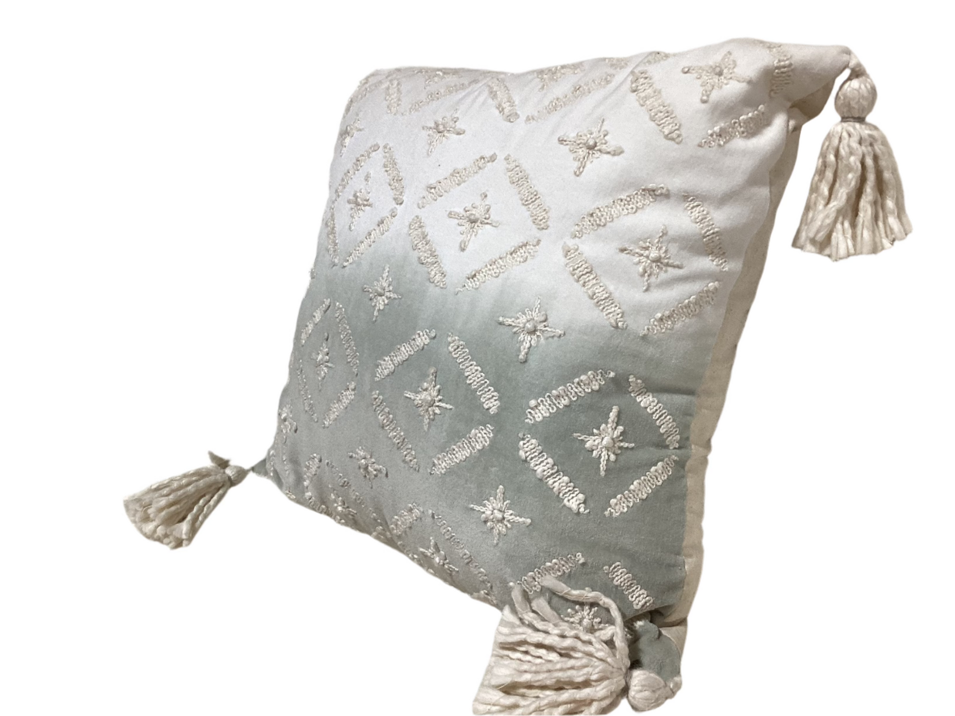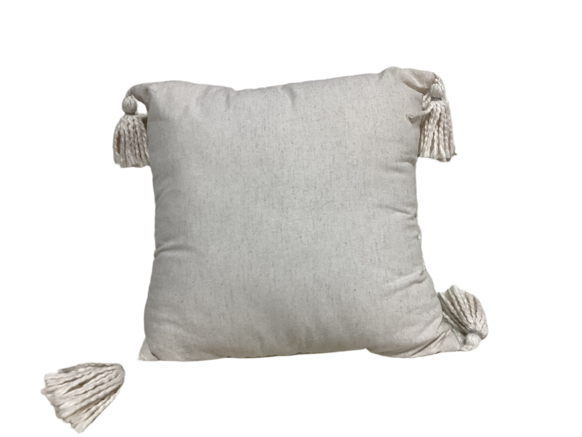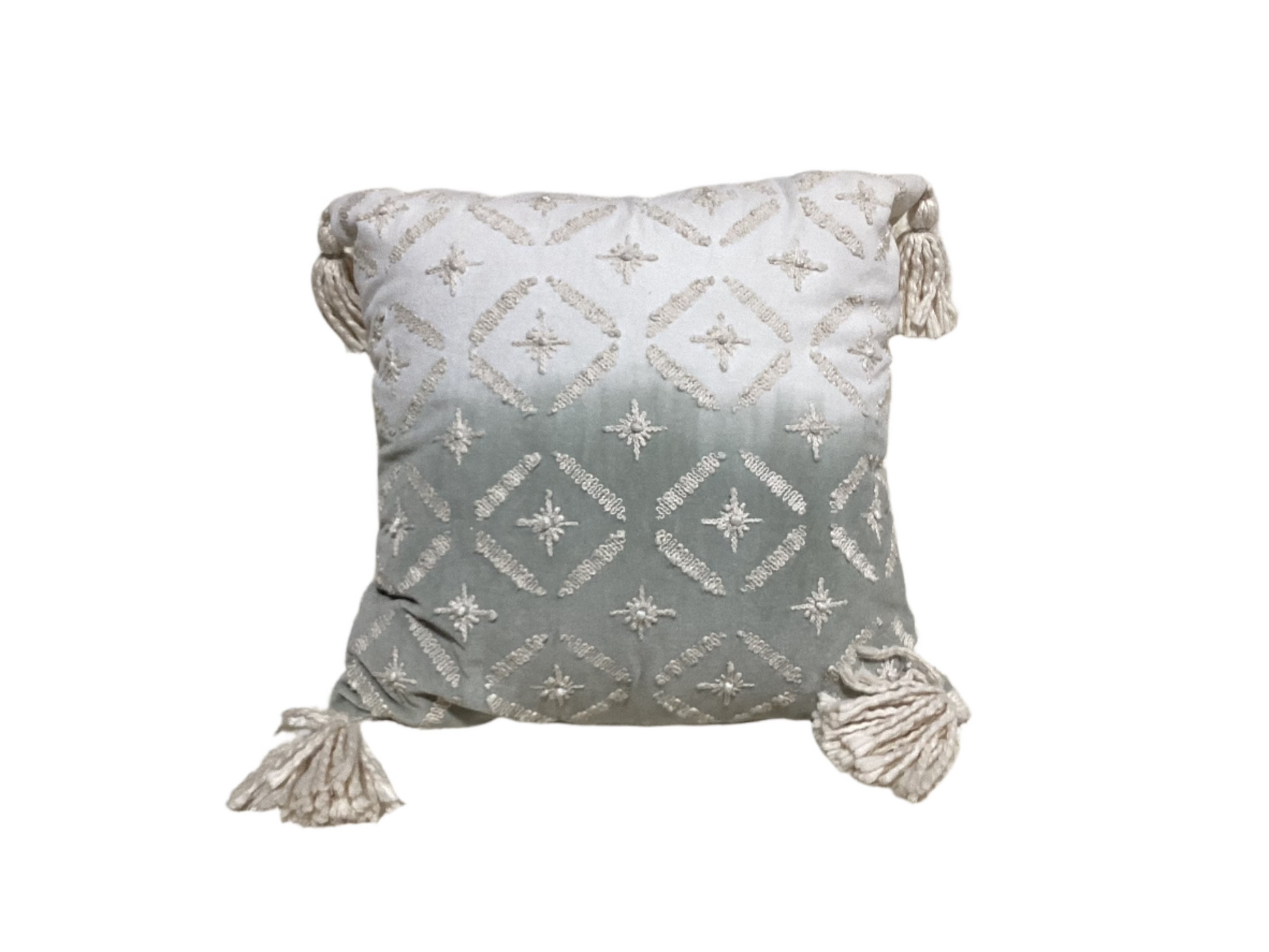 This 16” x 16” green and cream decorative pillow, with its earthy tones and relaxed style, brings a boho vibe. Perfect for adding a pop of color to a sofa, chair, or bed, it effortlessly blends with various decor while offering a natural charm.