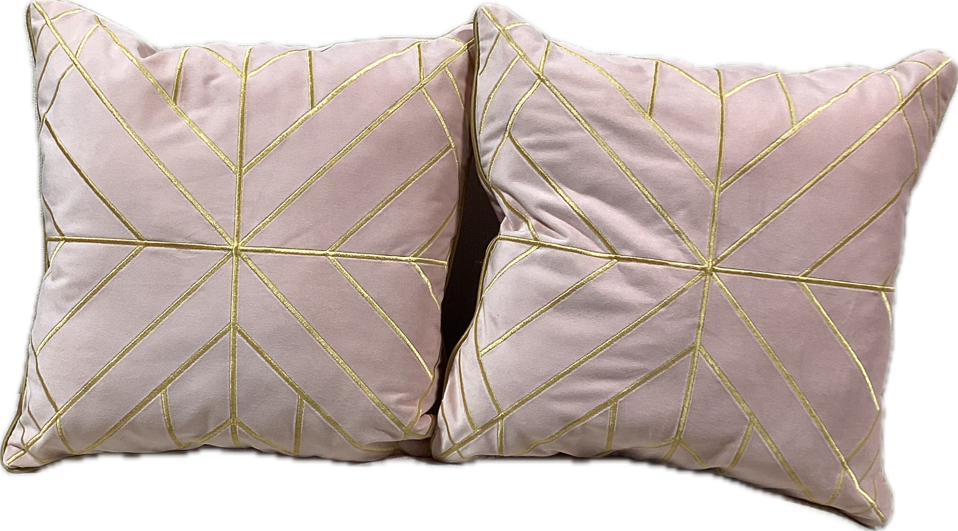 Pink Velvet W/Gold Throw Pillows-SET OF 2 *OPEN BOX