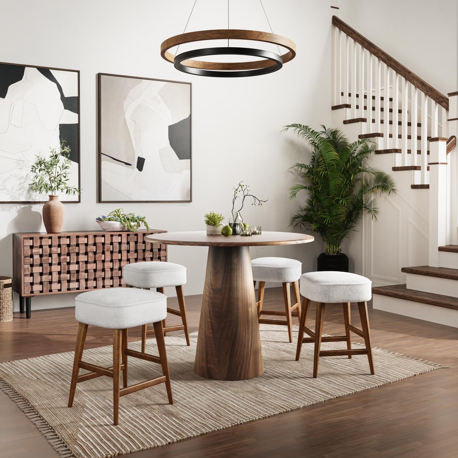 Clean lines, warm walnut tones, and fresh style make this round counter-height dining table a standout piece. Designed with a sleek veneer finish and contemporary profile, it’s the perfect blend of modern simplicity and timeless elegance.