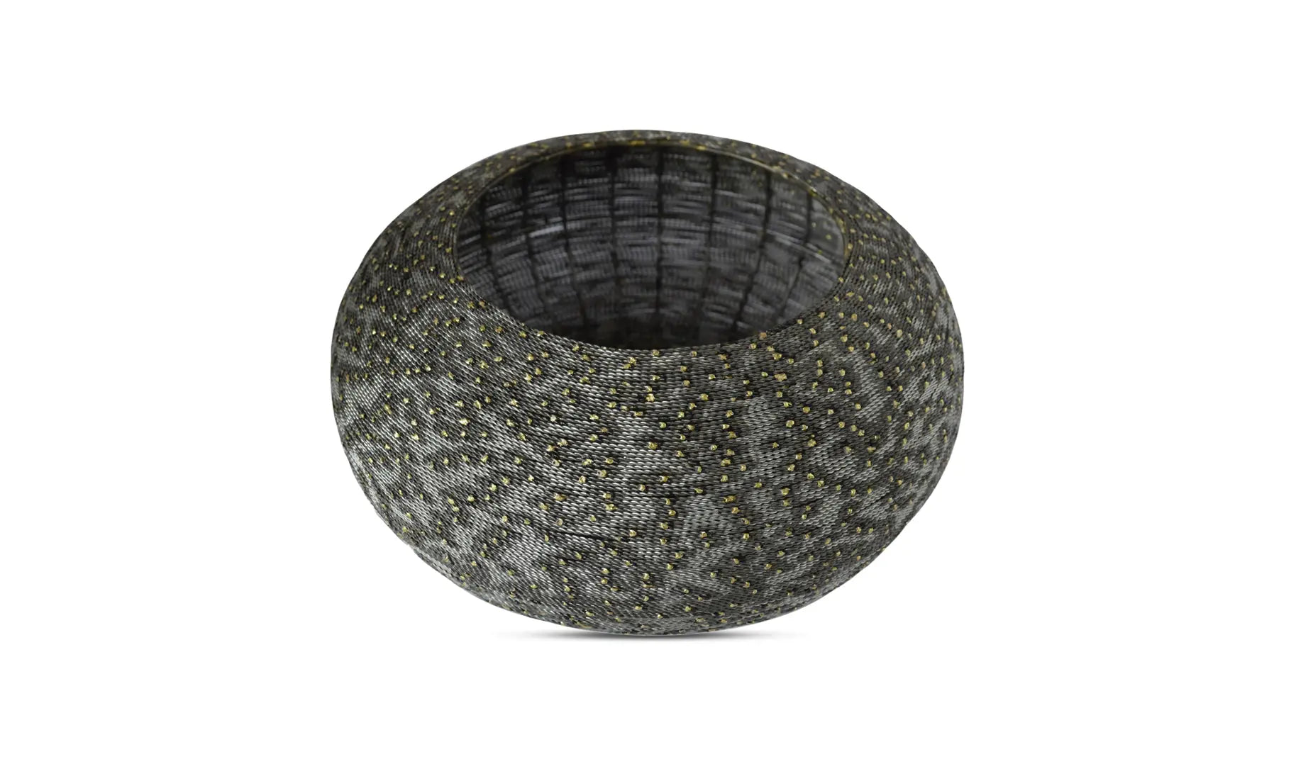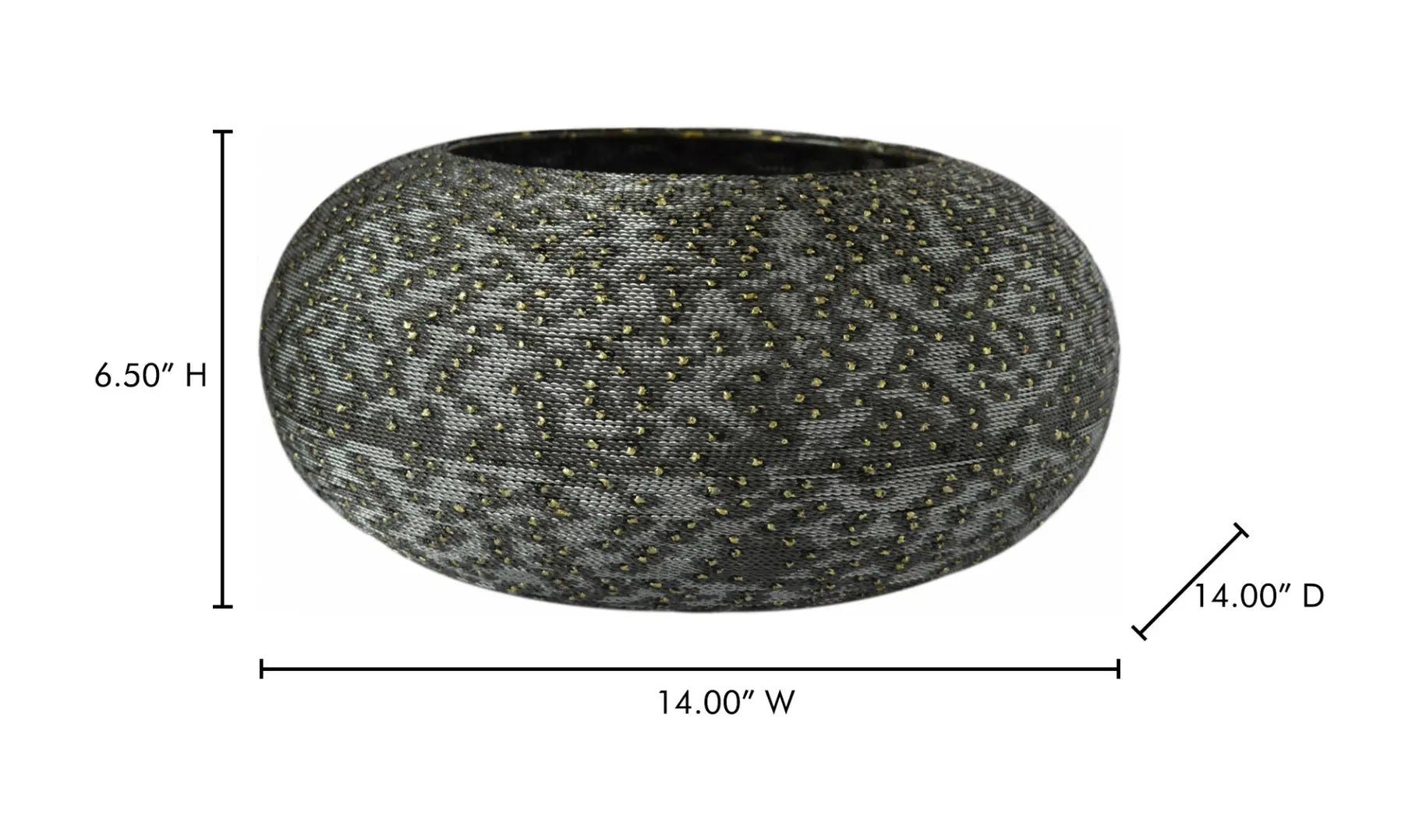 The Scorpio Metal Bowl seamlessly combines style and functionality. Crafted from sturdy iron, this bowl features a rich dark gunmetal finish with an intricate beaded pattern that adds an element of chic sophistication. Its ample size makes it versatile for holding a bouquet, stationery, fresh fruit, or trinkets, making it a practical and stylish addition to any space. Perfect as an accent piece, the Scorpio Metal Bowl fits beautifully into a contemporary modern home, adding a touch of intrigue and elegance.