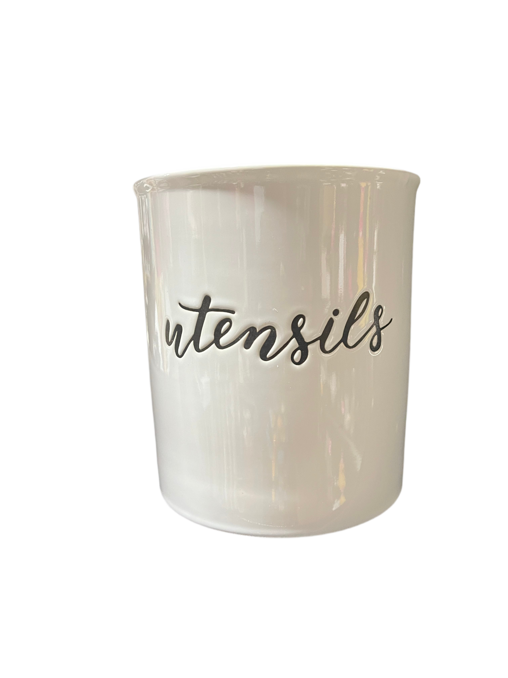 This open-box utensil holder provides an elegant and modern solution for countertop organization, featuring generous space to neatly hold your essential kitchen tools. Gently used for display purposes. Dimensions: 5.5 x 6.25.