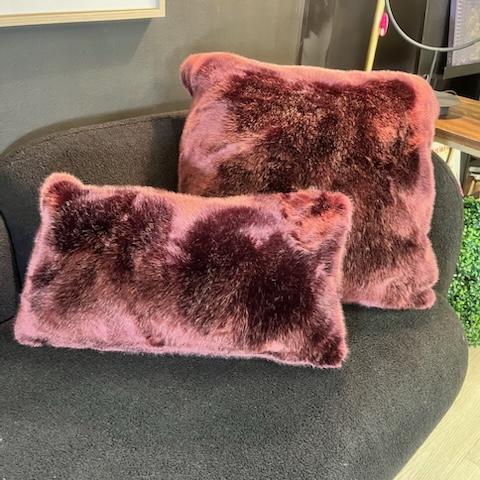 Deep Burgandy Faux Fur Pillows SET OF TWO