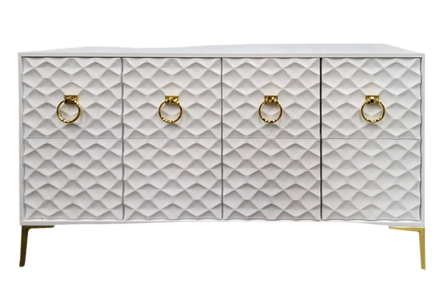 Elevate your space with this elegant wood console cabinet, featuring a crisp white finish and gold hardware for a touch of sophistication. Measuring 65” wide by 35” high, this versatile piece offers both style and functionality, making it perfect for entryways, living rooms, or dining areas. With ample storage and a timeless design, it seamlessly blends into modern, transitional, and classic interiors.