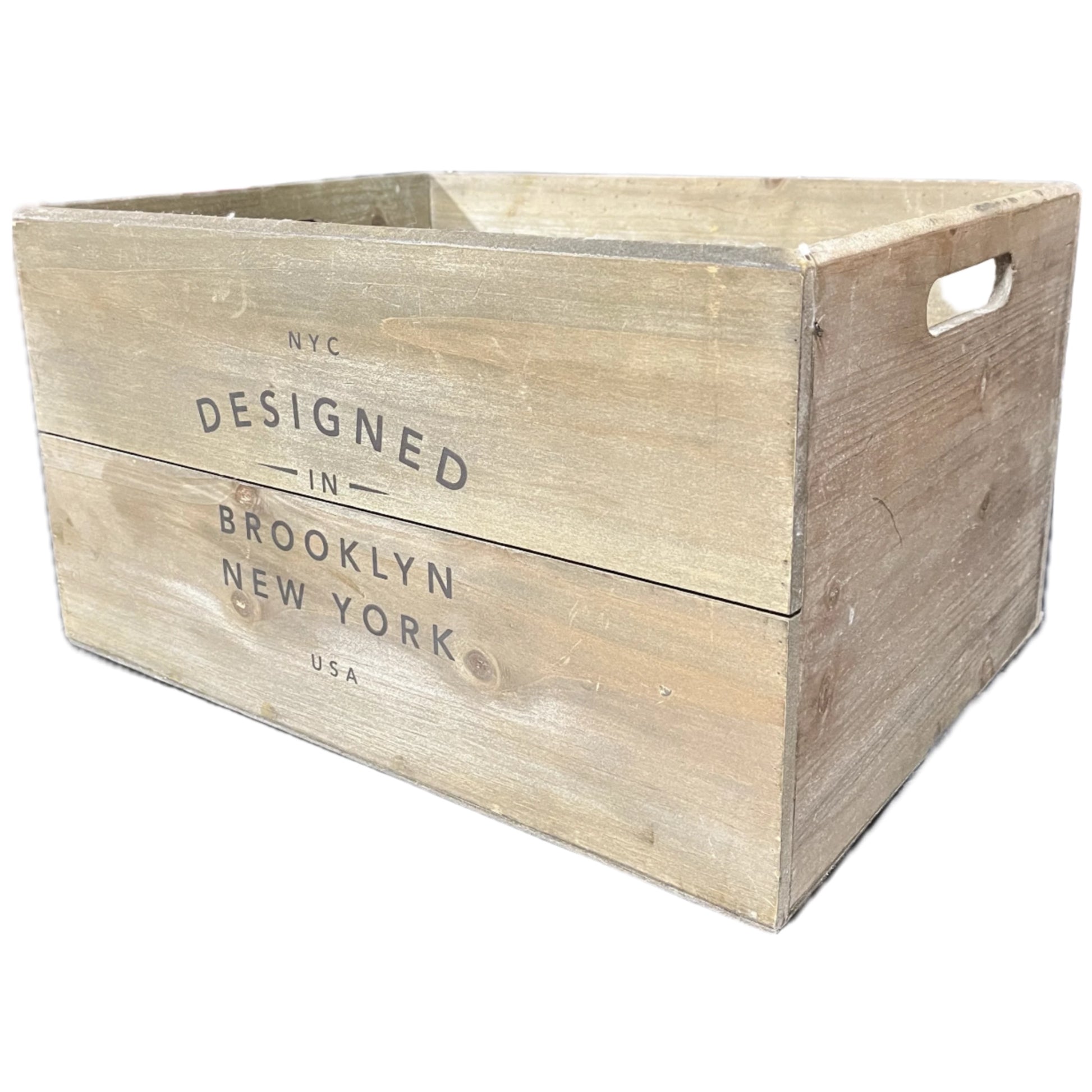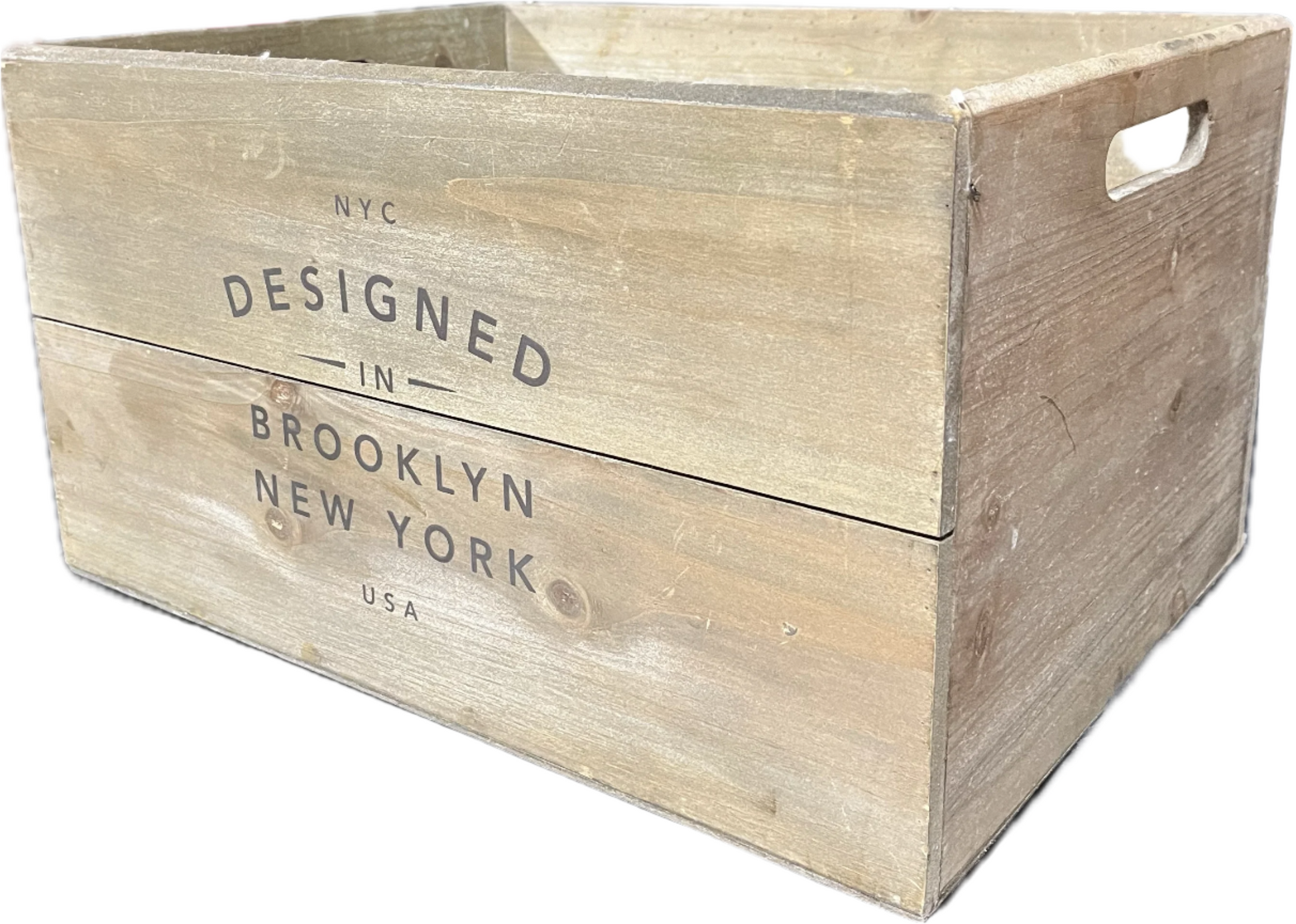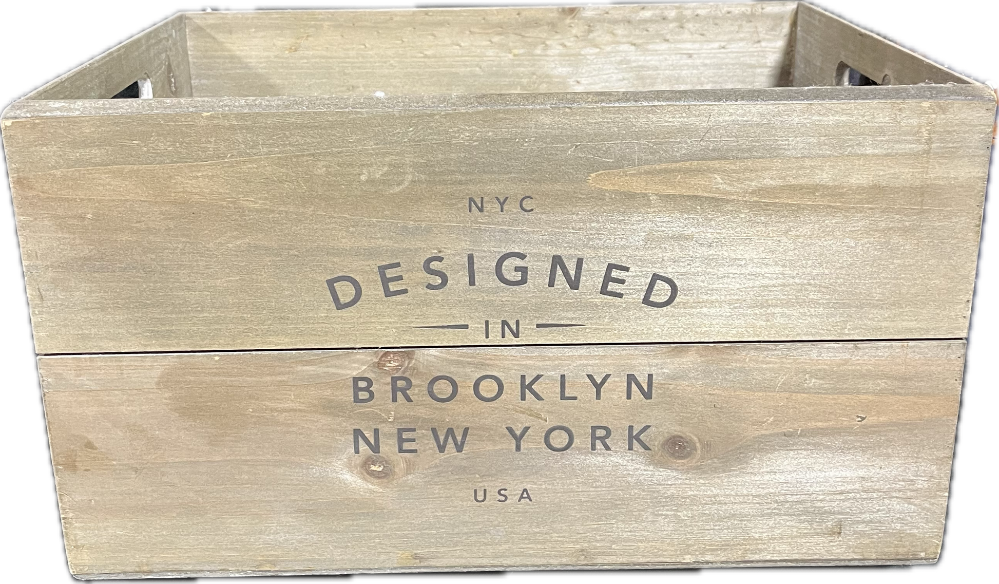 This Wooden wine Crate may be the perfect storage solution with its rustic charm, handle for easy transport, and dimensions of 12”x17”x9.5”. And to top it off, it even boasts a quirky phrase on the front - "designed in New York"! Made for all your storage needs, this crate is sure to bring some fun and personality to any room.
